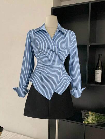 بلوزة نسائية فضفاضة بأكمام طويلة مع حزام