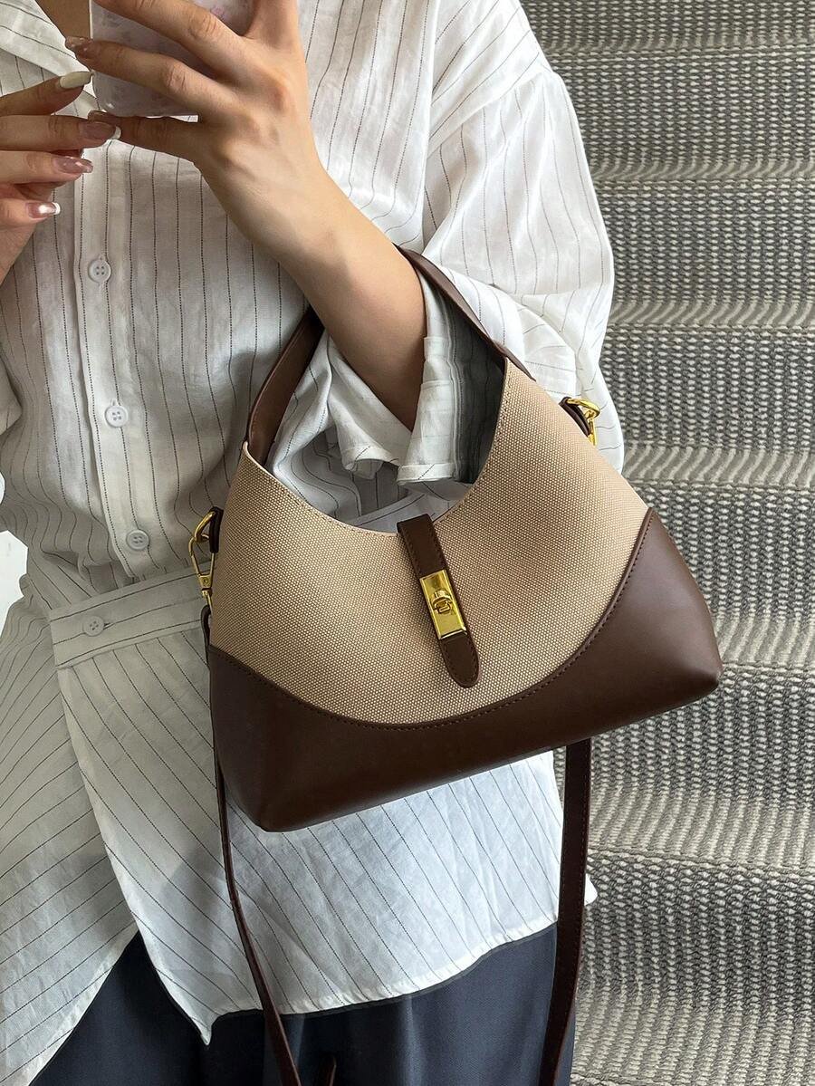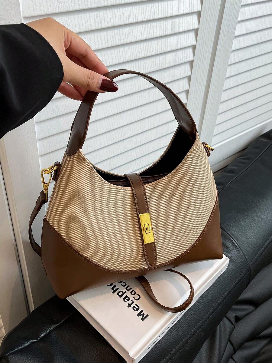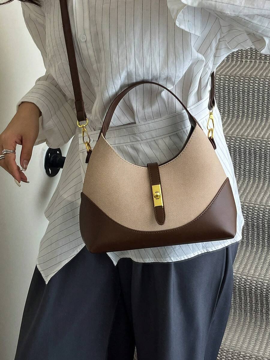 • اسم المنتج: حقيبة يد وكتف نسائية أنيقة بتصميم سرج بني
