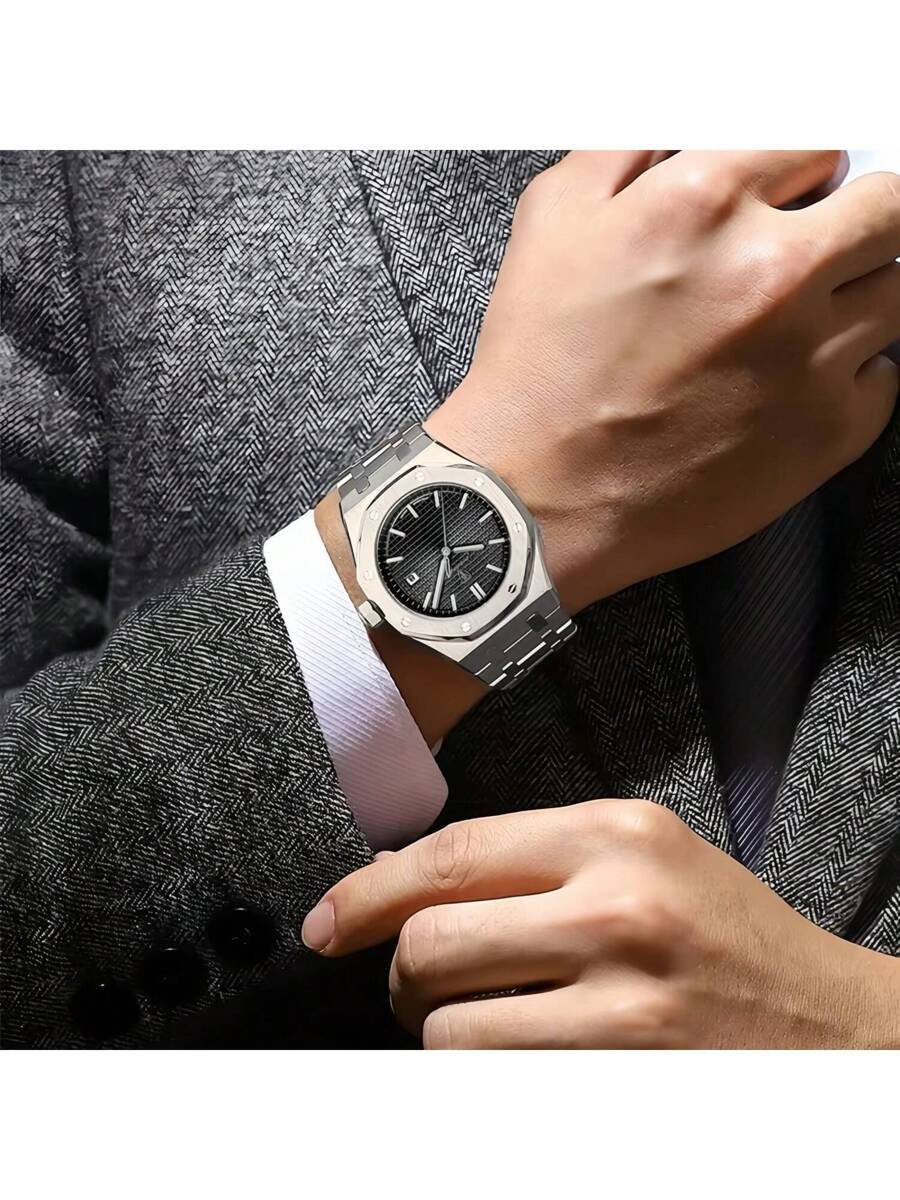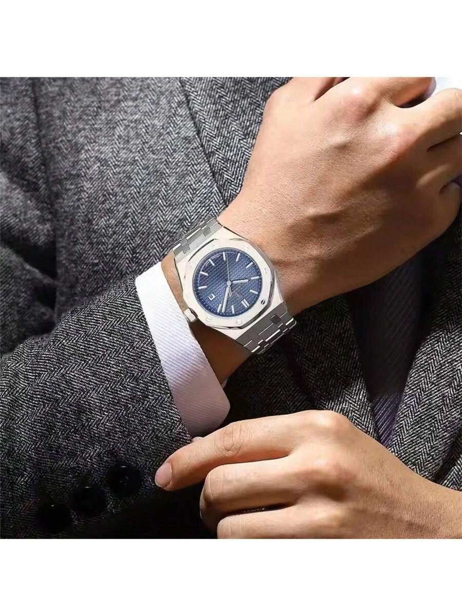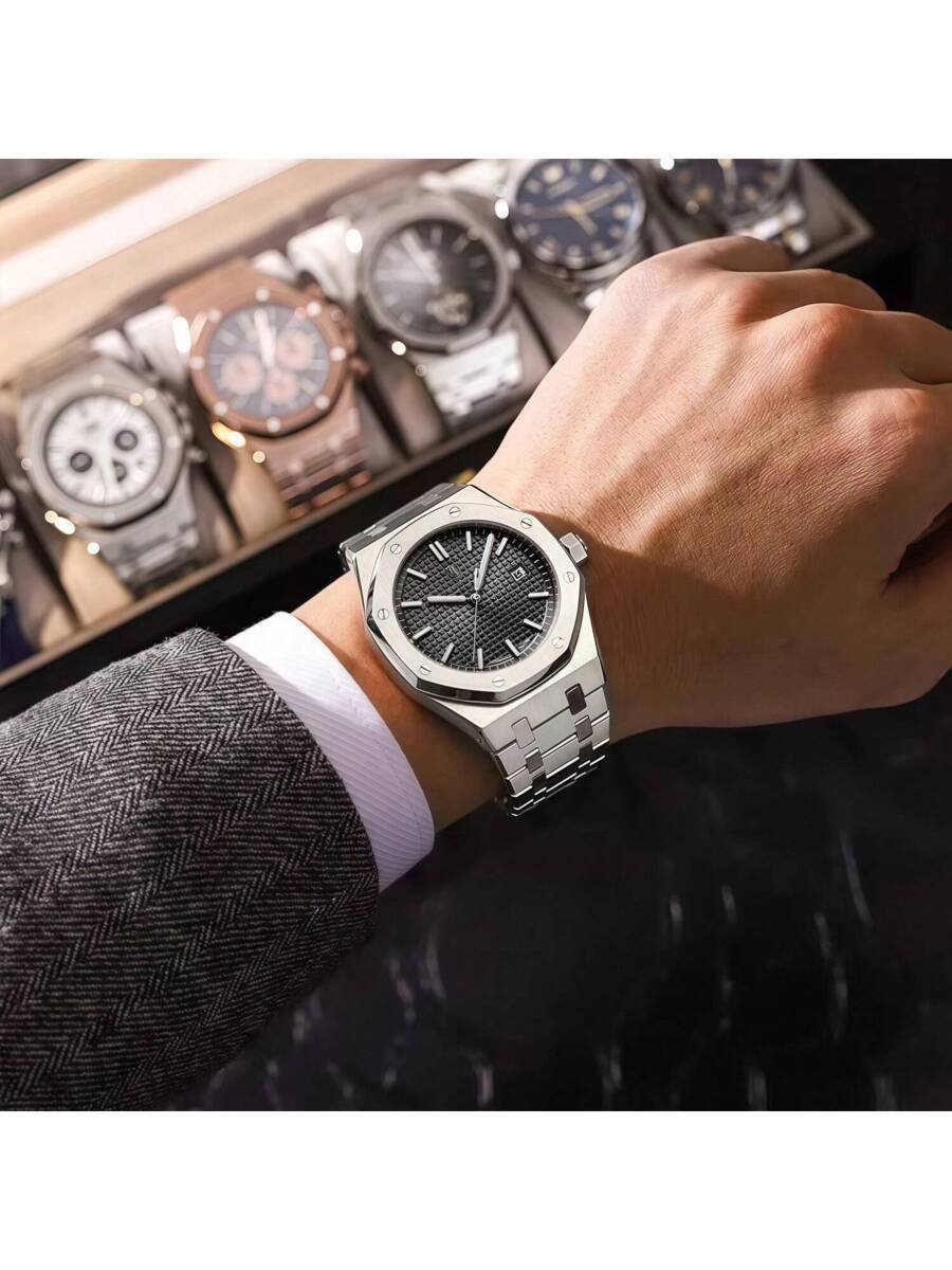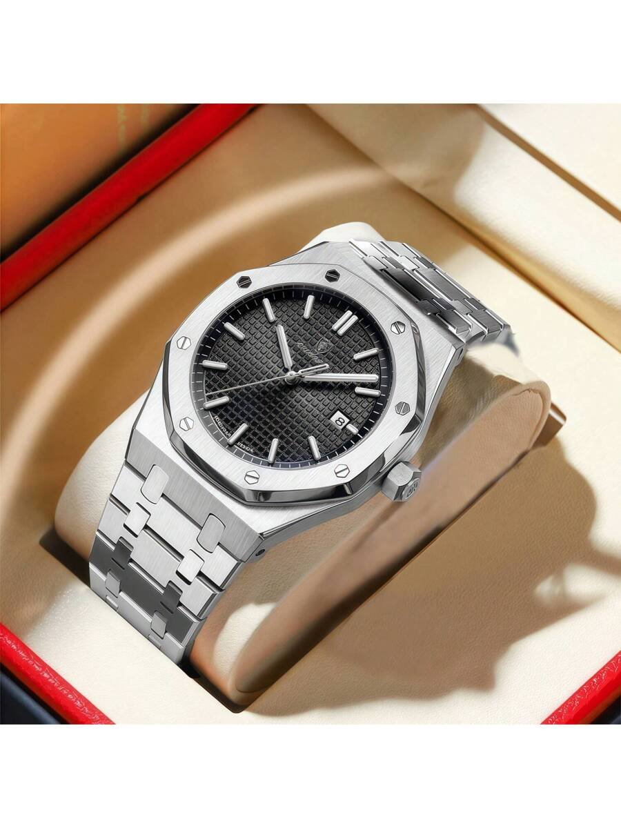 - تصميم أنيق: ساعتنا تأتي بتصميم مضلع يضفي لمسة من الفخامة.