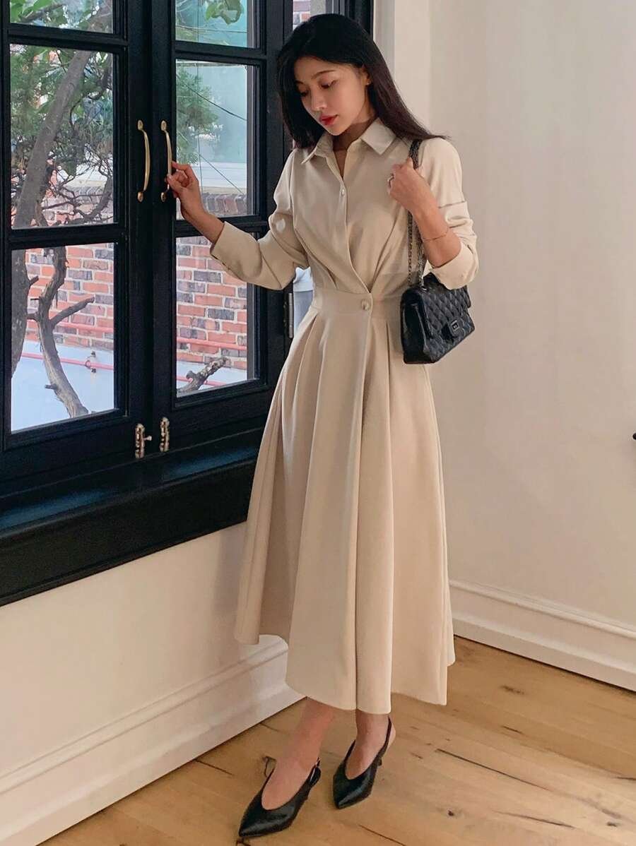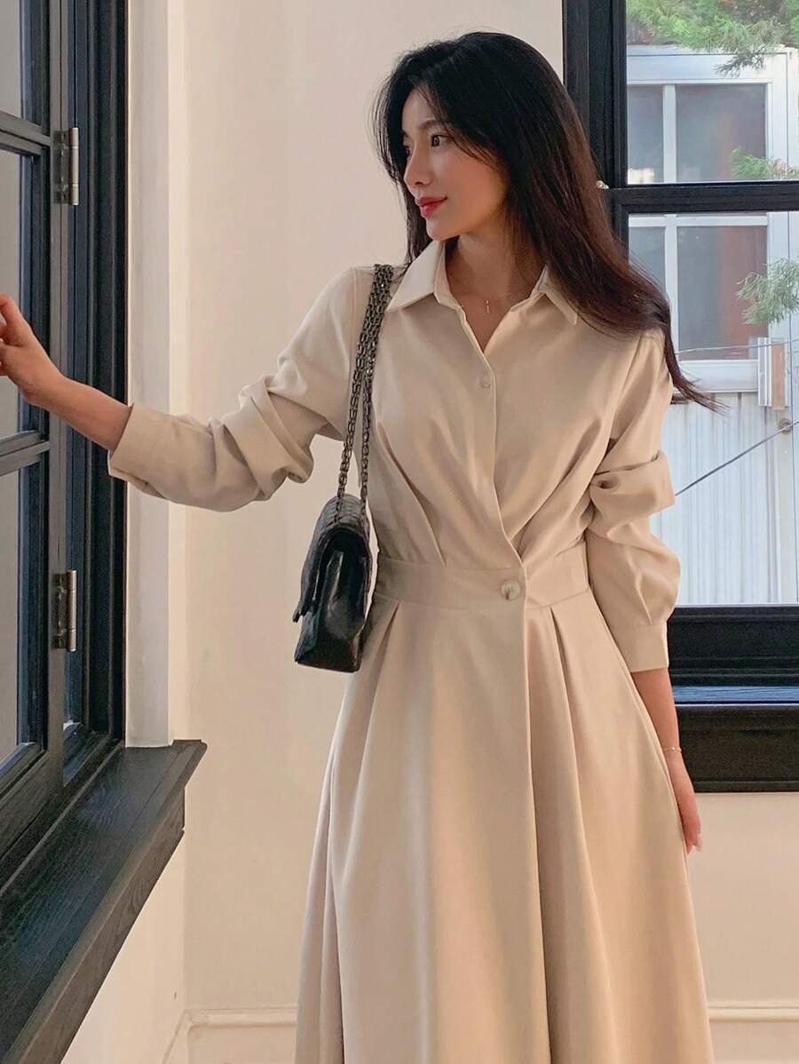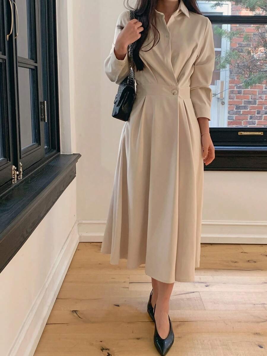 - اسم المنتج: فستان نسائي أنيق بياقة منقلبة