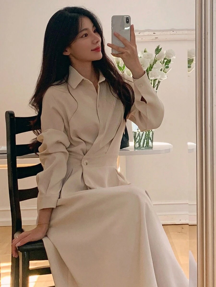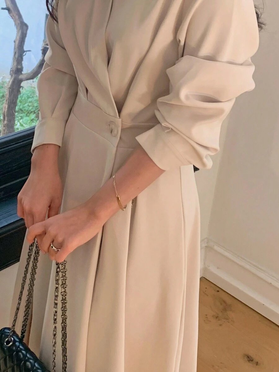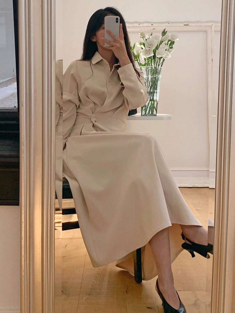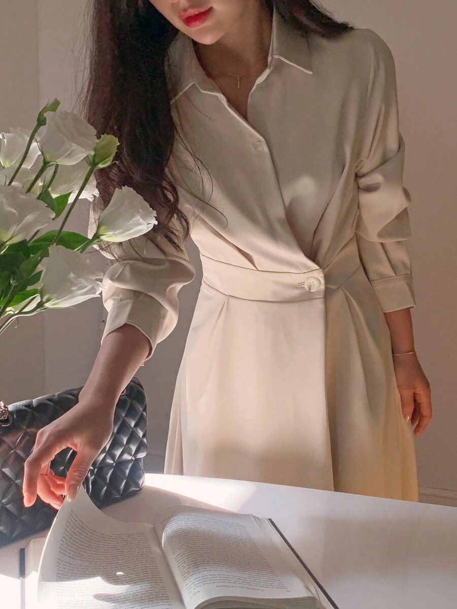 - تفاصيل متميزة: تصميم الشريط المطوي حول الخصر يبرز جمال قوامك، بينما تضيف بياقة القميص لمسة احترافية للعناصر الكلاسيكية.